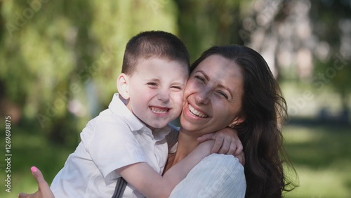 A heartwarming and joyful moment capturing a mother and her child as they share delightful times outdoors