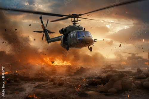 A helicopter fighting a wildfire from the air created with Generative AI technology