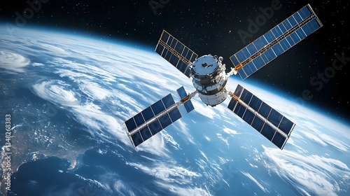 A high powered satellite in orbit around Earth equipped with advanced radar technology scanning the planet s atmosphere and creating a stunning cosmic visual effect