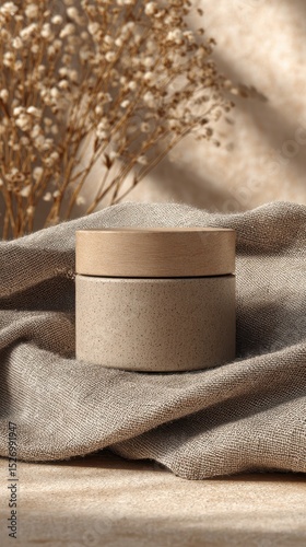 A High Resolution image of round Eco Packaging Jar Mockup on Linen Cloth.