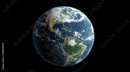 A highly detailed 3D model of Earth, rotating slowly with realistic textures of land, water, and atmosphere.