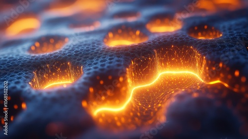 A highly detailed 3D model of graphene battery nanostructures glowing with power.