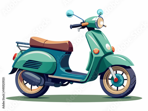 A high-quality vector of a modern city scooter with rounded body and step-through frame, isolated on a white background