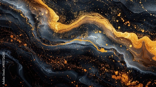 A high-resolution image of a gold and black marble abstract pattern, showcasing fluid ink textures, watercolor splashes, and elegant white highlights on a sleek modern background