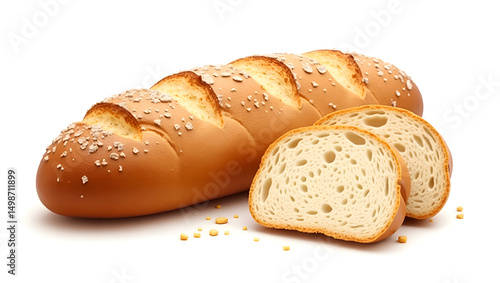 A high-resolution, isolated image of a traditional French baguette with a crisp, golden-brown crust and a soft, airy interior