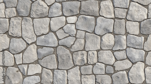 A high-resolution seamless gray cobblestone wall or road texture, designed with grungy stone patterns and natural variations.
