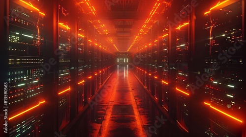 A high-tech data center, with rows of glowing servers Optimizing Business Operations.
