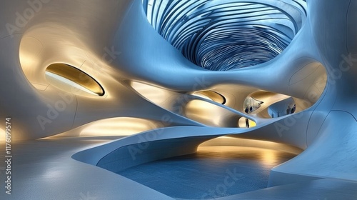 A high-tech futuristic tunnel with a curved, organic structure, showcasing a blend of modern design and smooth, fluid lines.