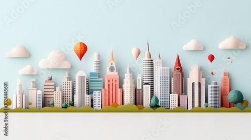 A historical and nostalgic illustration of a cityscape skyline depicting the architectural evolution of the city and its historical significance.