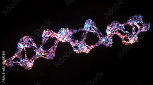 A hologram of DNA. DNA from polygons, triangles, points, and lines. The DNA chain is a low-poly compound structure. The technology concept.