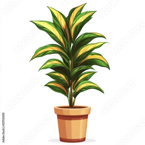 A houseplant in a pot is illustrated in a modern flat style, standing alone in the image