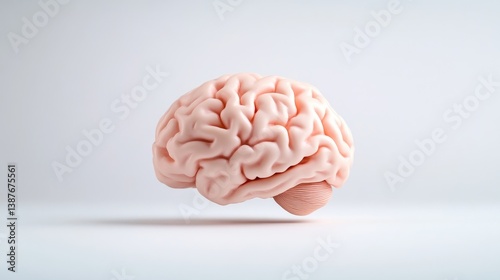 A human brain model isolated on white background, detailed and realistic 3D rendering, close-up view, and educational and medical concept.