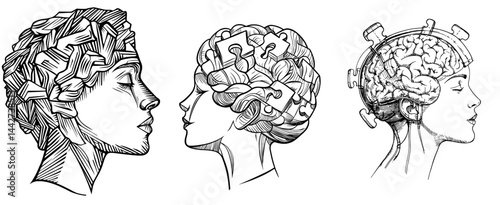 A human head's silhouette is filled with puzzle pieces symbolizing the brain