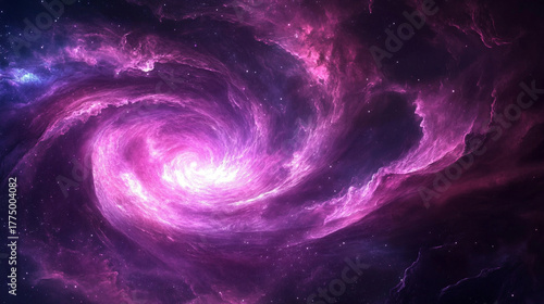 A hyperrealistic cosmic scene of a nebula twisting and spiraling into a radiant glowing vortex, set against the vastness of deep space. The rich colors, luminous energy, and swirling patterns evoke a