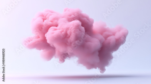 A hyper-realistic image shows fluffy pink cotton candy floating, isolated with enhanced whiteness against a plain background.