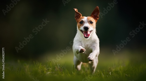 A Jack Russel terrier running joyfully through a sunny field, embodying energy and happiness.