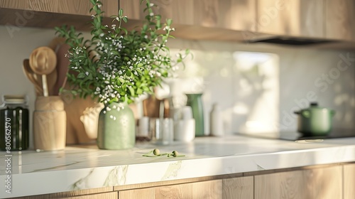 A Japandi-style modern Scandinavian apartment featuring a minimalistic kitchen