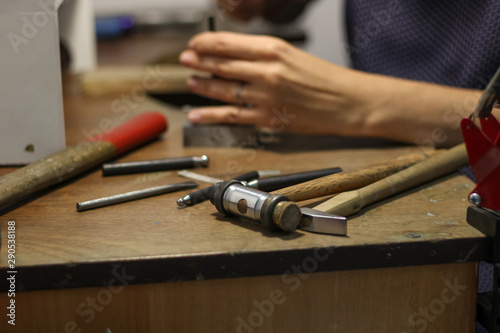 A jewelry master is working to create a silver ring