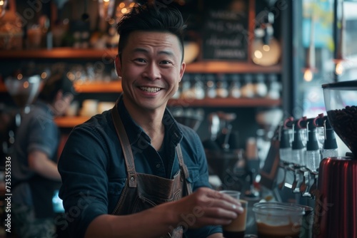 A jovial man enjoys a refreshing drink in a cozy pub, radiating warmth and contentment through his genuine smile and stylish attire