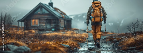 A joyful family hiking together in a sunlit field, surrounded by vibrant flowers and a stunning sunset over the mountains.