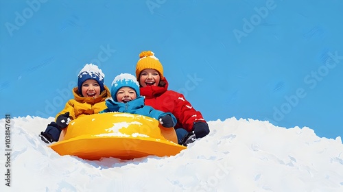 A Joyful Family Sledding Down a Snow Covered Hill in the Wintertime