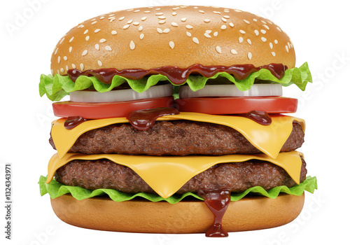 A juicy double cheeseburger with two grilled beef patties isolated on transparent background