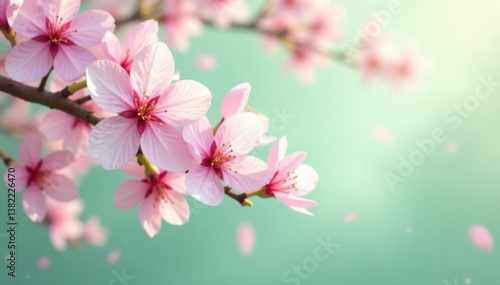 A kaleidoscope of pink and white sakura petals swirling in an ethereal dance, against a soft pastel green backdrop , spring, abstract