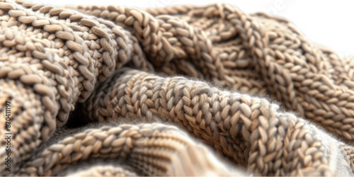 A knitted sweater with a lot of yarn and a fuzzy texture. The sweater is brown and has a lot of knots