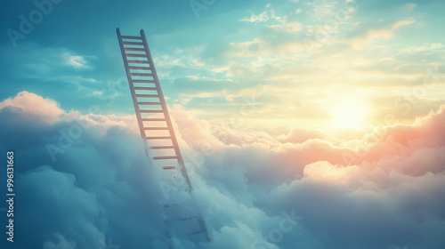 A ladder where "achieve your goals" is each rung, extending higher into the clouds with every step taken