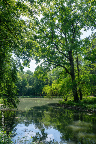 A lake in green nature with trees