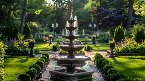 A landscape with elegant fountains surrounded image