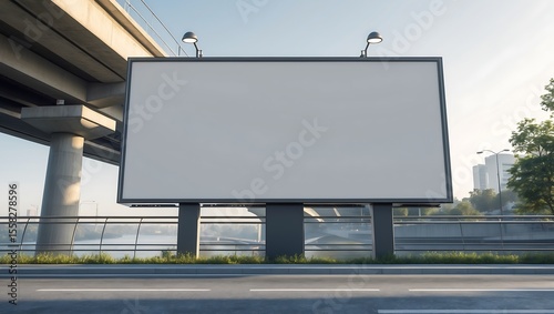 A large, blank billboard stands beside a highway, ready for advertisement.