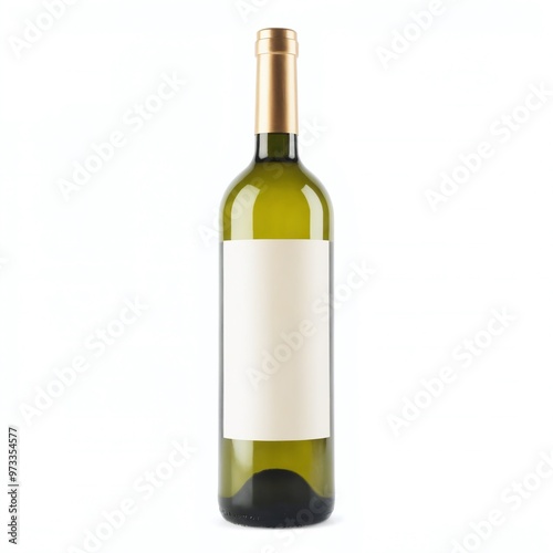 A large bottle of white wine with a blank label on a light background showcasing its clear content and elegant shape
