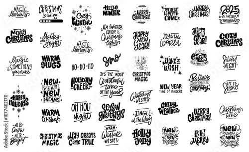 A large collection of handwritten festive Christmas quotes and phrases, perfect for creating personalized designs for greeting cards, posters and social media graphics.