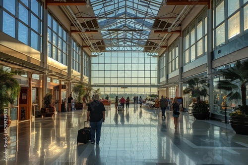 a large group of people walking through a terminal, The vibrant hustle and bustle of a busy local airport as seen from a traveler's perspective