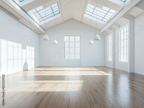A large room with a lot of windows and a lot of light. The floor is made of wood