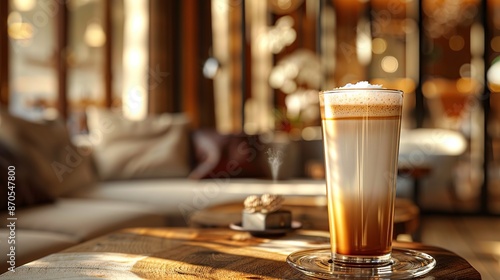 A Latte Art Coffee in a Modern Cafe