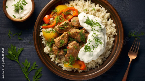 A lavish spread of traditional Indian dishes on a wooden table, featuring curries, rice, and bread, perfect for caprese salad and tomato bruschetta on black background Filling dishes for a Ramadan