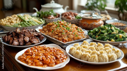 A lavish spread of various Asian dishes for a feast.