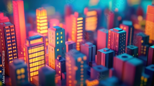 A layered paper cityscape with bright colors and comic-style outlines, creating a dynamic scene.