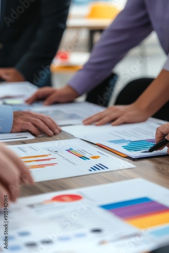 A leadership team reviewing feedback on cultural initiatives. Desk with feedback forms and diversity reports