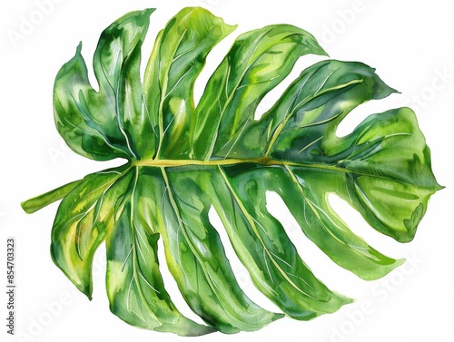 a leaf clipart, tropical leaf element, watercolor illustration, isolated on white background., --ar 4:3 --fast Job ID: d807f012-6f77-42ad-93ed-4d9d2efebdb0