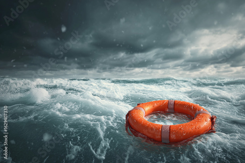 A life preserver is floating in the ocean