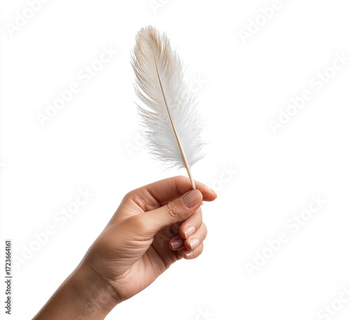 A light beige feather held gently in a hand