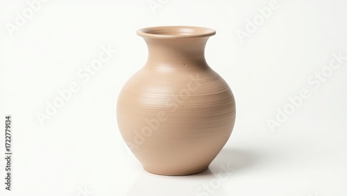 A light beige, handmade ceramic vase stands out against a plain white background.