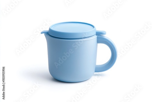 A Light Blue Plastic Pitcher With A Lid