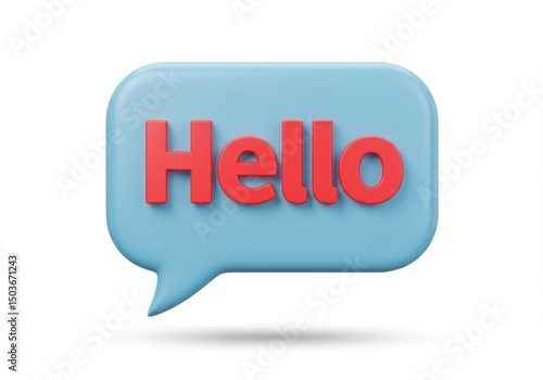 A light blue speech bubble with the word hello in a vibrant red font on white