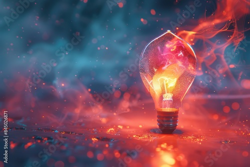 A light bulb is lit up and is sitting on a table. idea and creative concept.