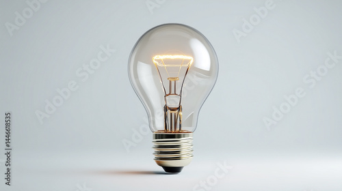A light bulb is lit up and is sitting on a white background