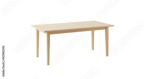 A light colored wooden table with four legs standing on a black background in a studio setting view